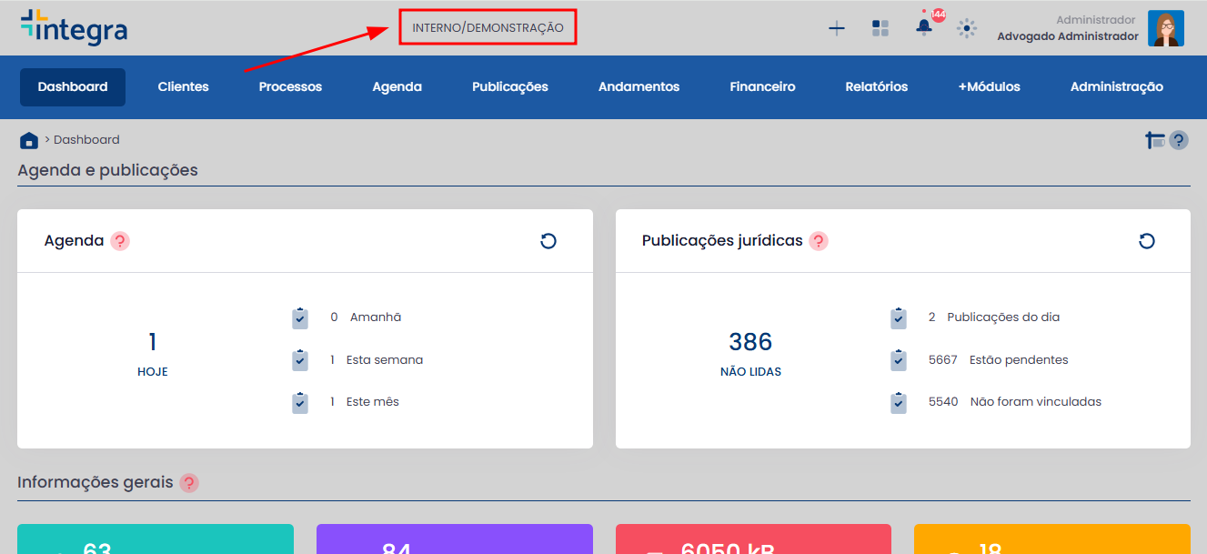 Precisa alterar o nome do escritório, que aparece na parte superior de seu Integra?