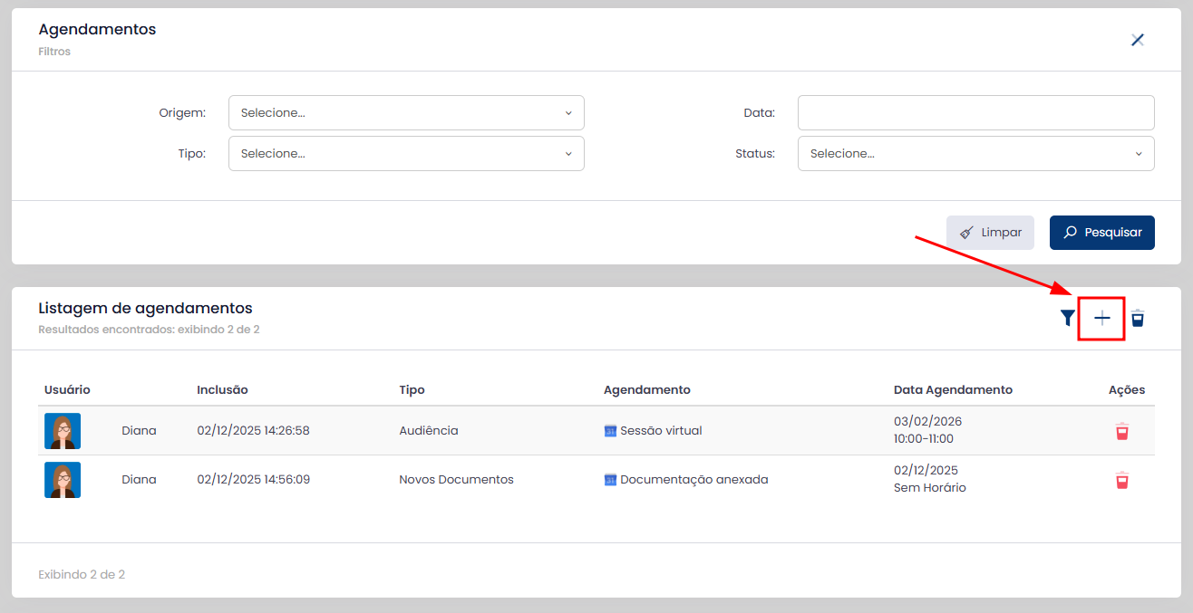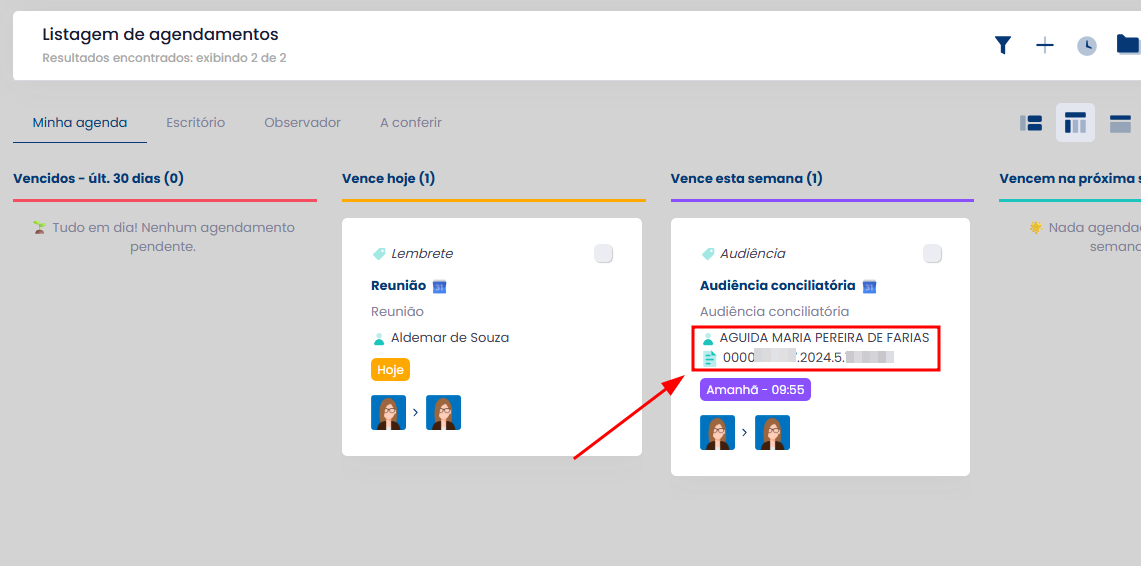 Nesse passo a passo, você verá como criar agendamentos vinculados a um cliente e processo.